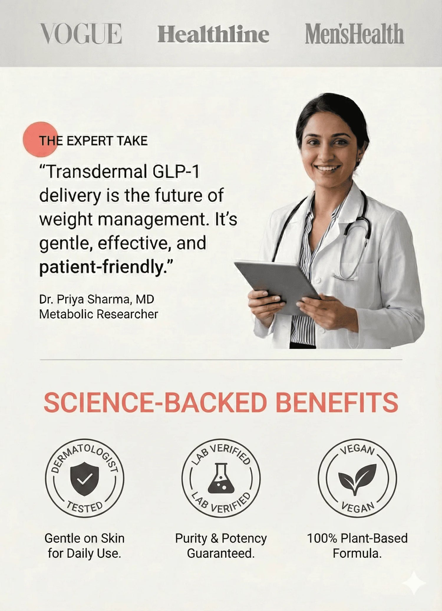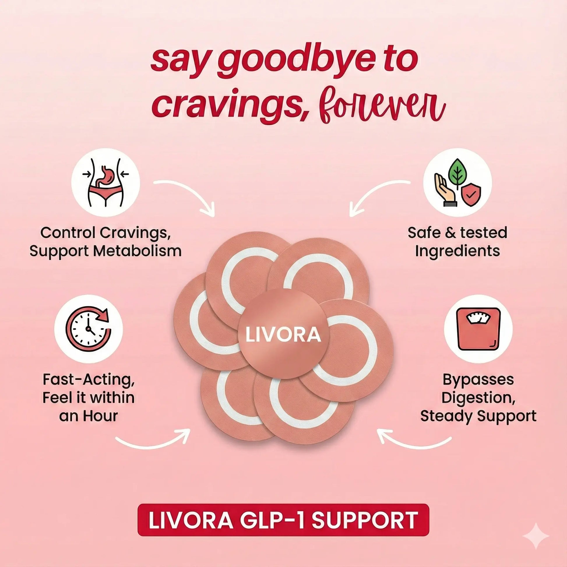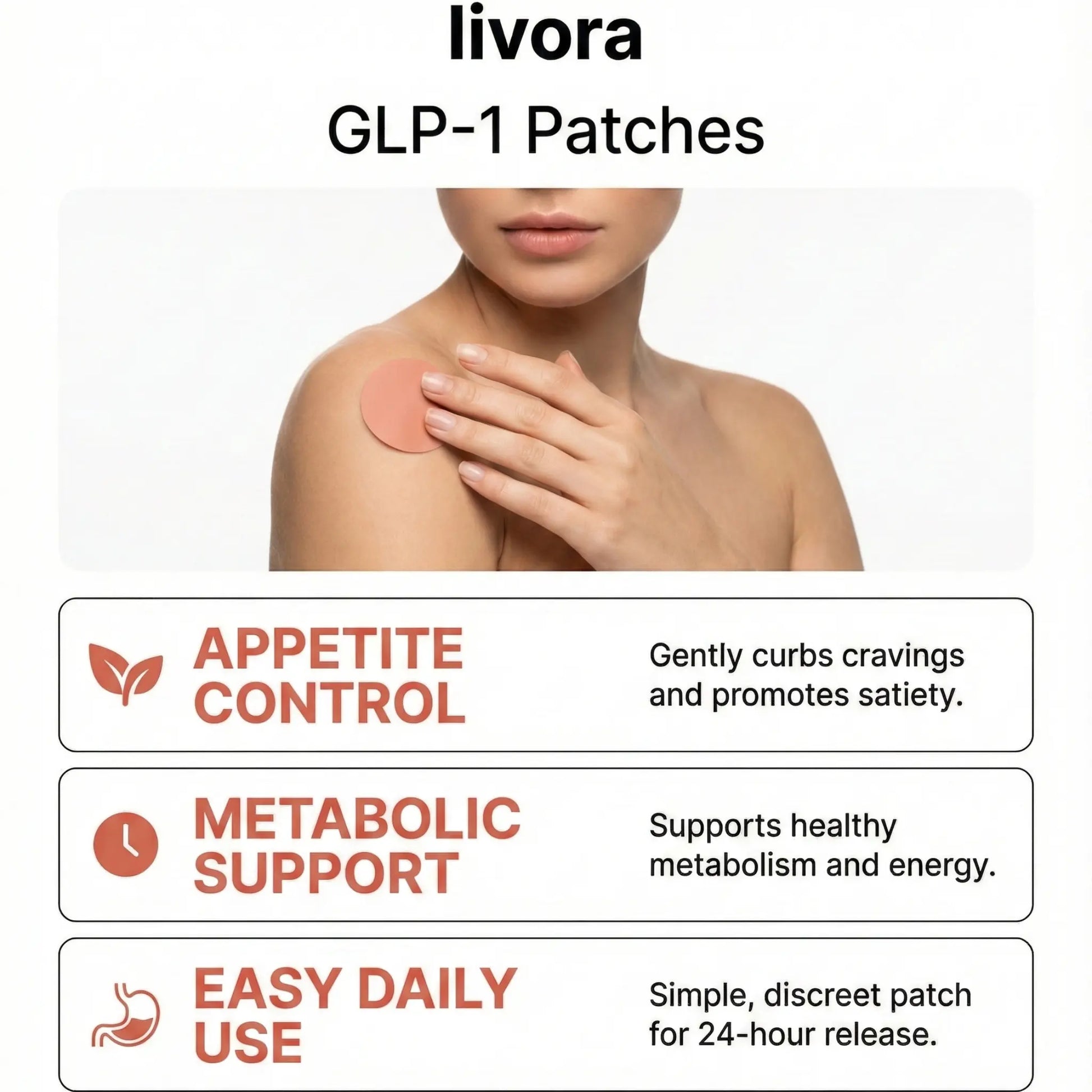 Constant cravings. Portion control battles. Snack attacks at 3pm. It's not weakness—it's biology. GLP-1 is the hormone that tells your brain "I'm full." When that signal is weak, you're always hungry. Livora GLP-1 Patches support that signal through your skin for 24 hours. No needles. No pills breaking down in your stomach. Just steady appetite regulation.